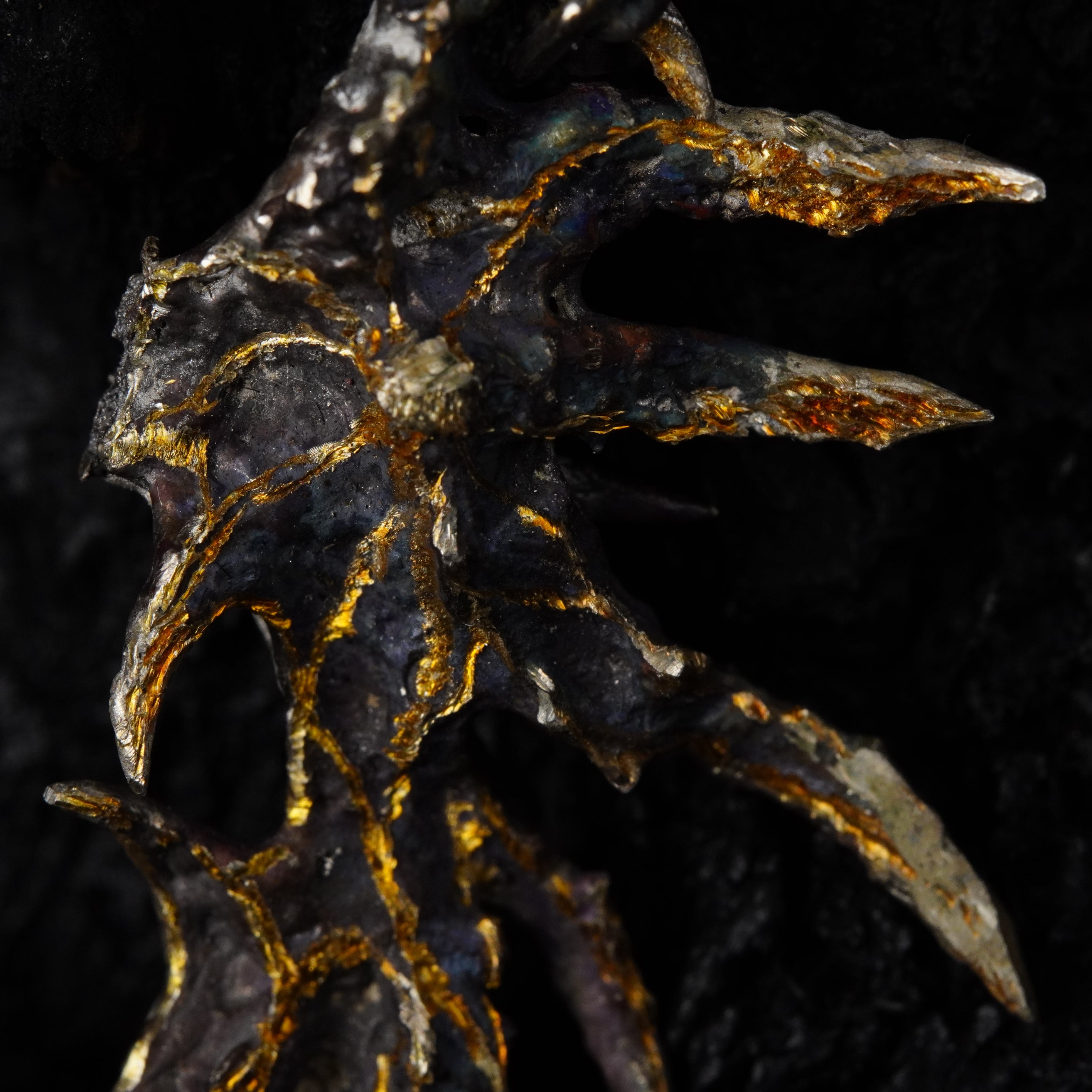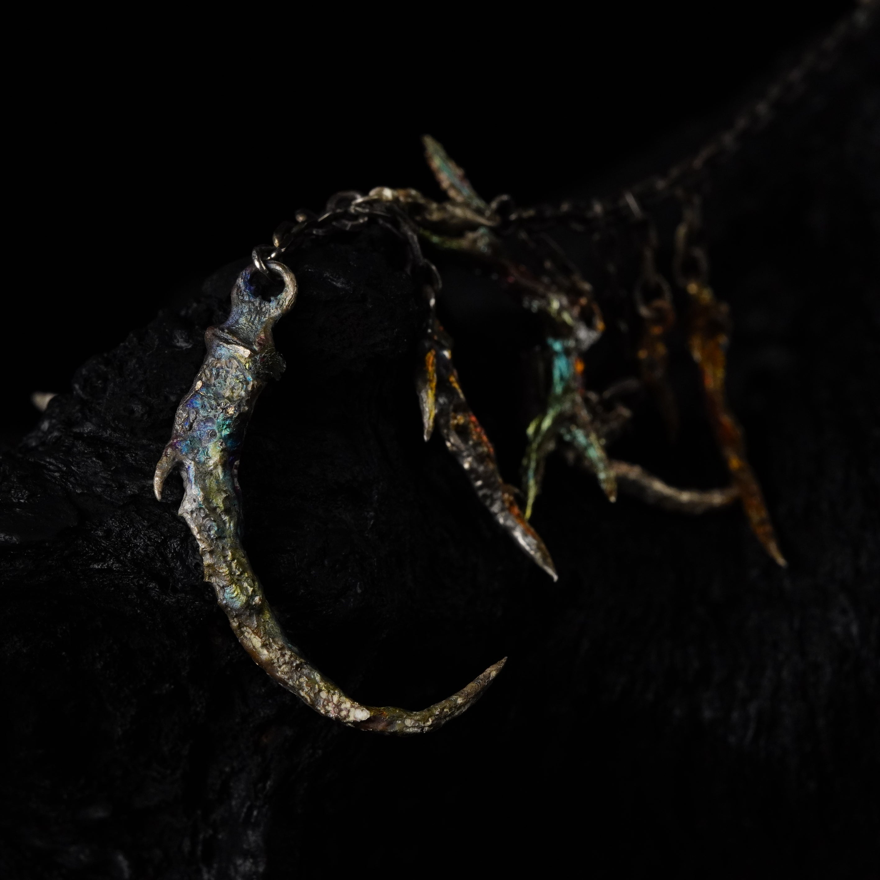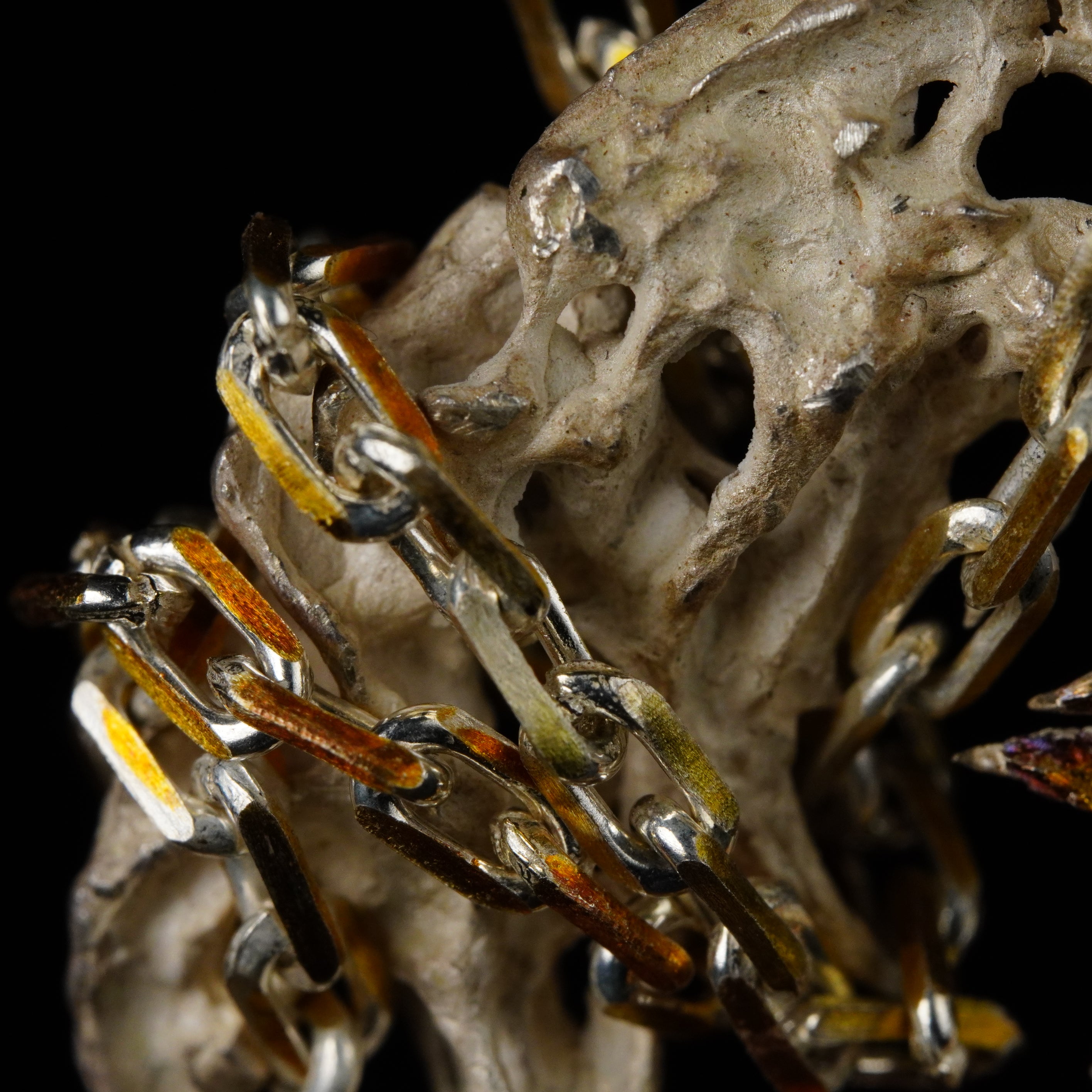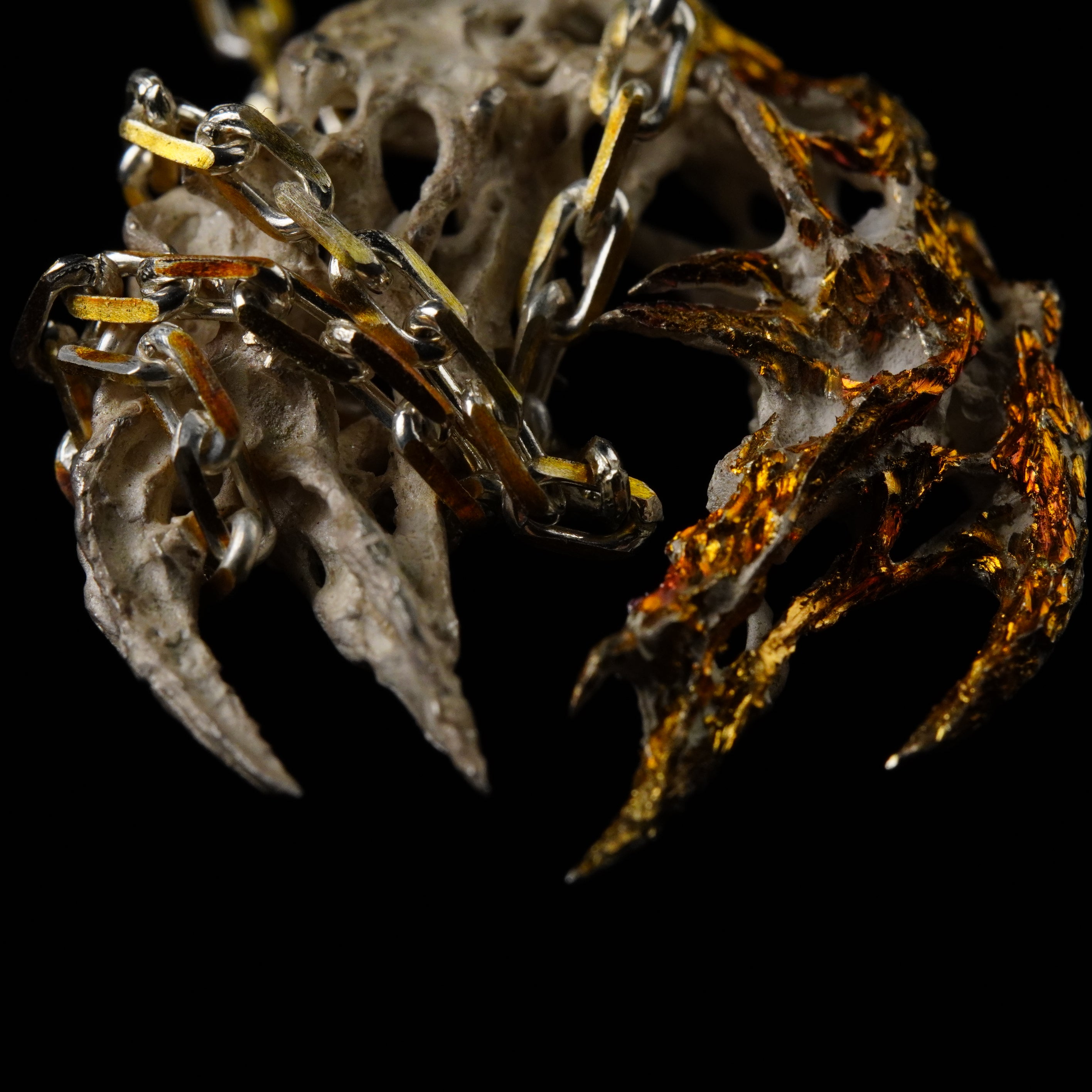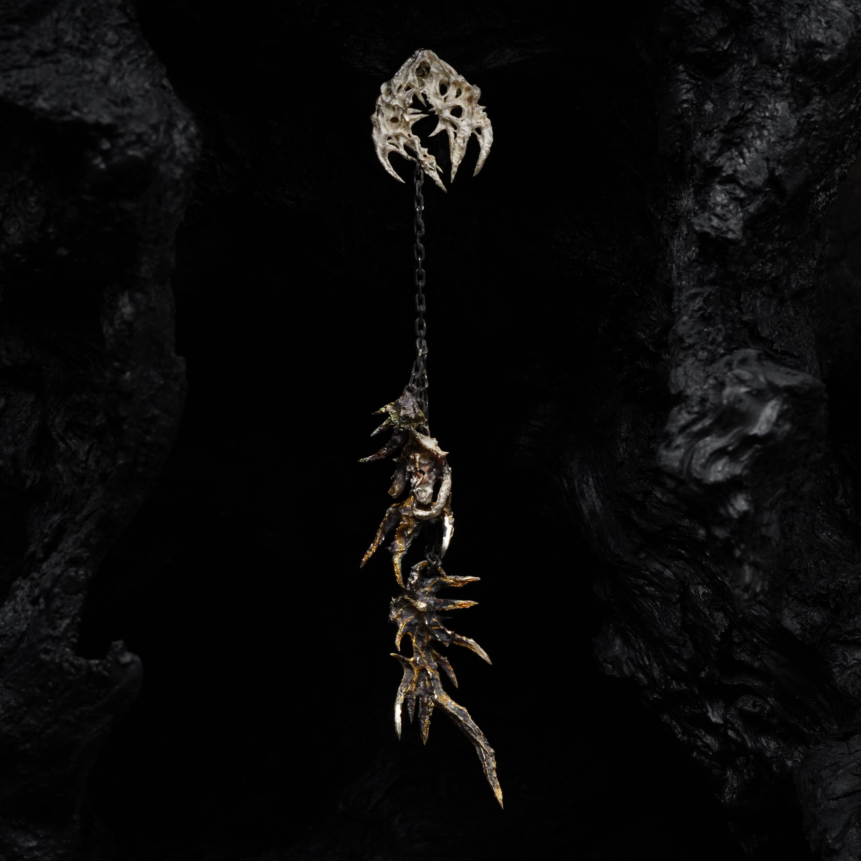 BOTRUS: born as two distinct presences forced to align, the cluster earrings reveal their totality as a visceral spasm, the surrounding void overwhelms the gaze and reveals the mystery of their essence.
